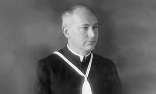 Blick auf das Stift Klosterneuburg umgeben von grüner Landschaft und Hügeln.