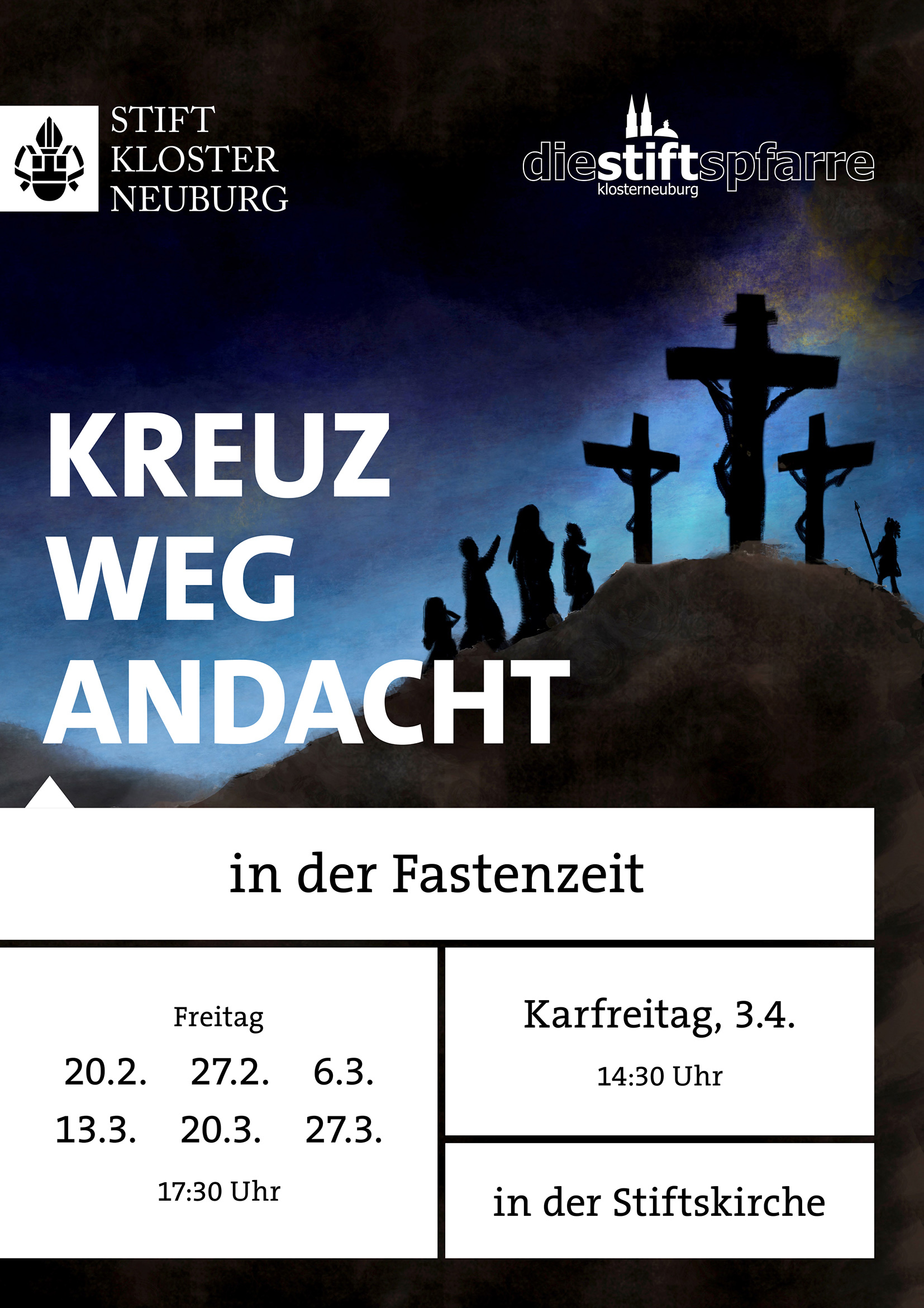 Programm in der Stiftskirche während der Fastenzeit mit Gottesdiensten und Musik.