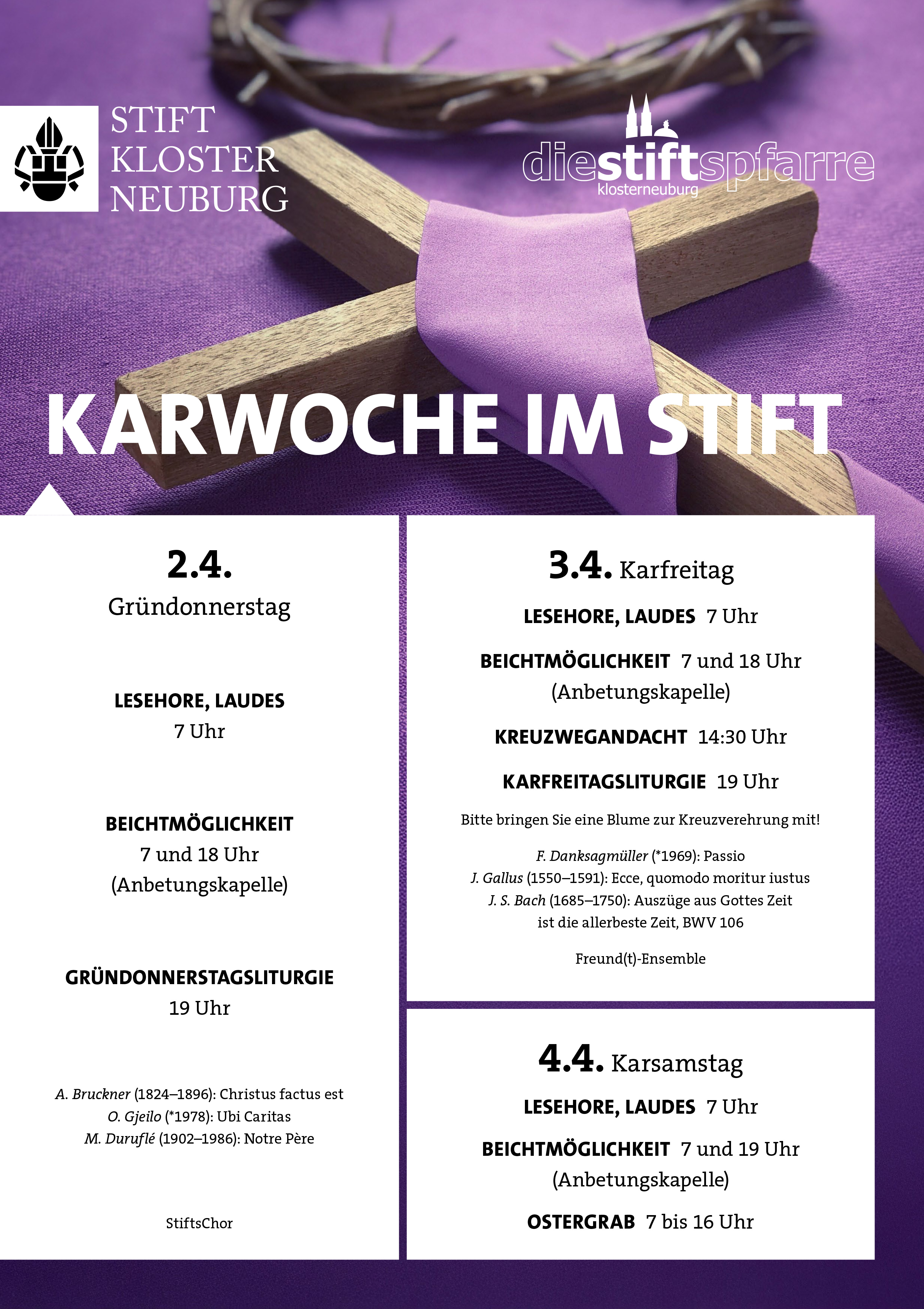 Programm in der Stiftskirche in der Karwoche und zu Ostern.