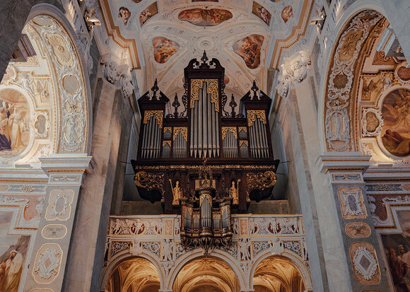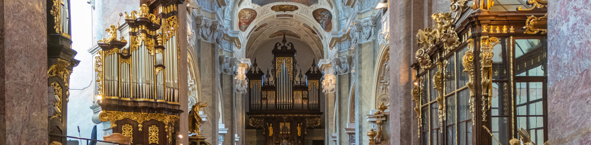 Die Chororgel wurde 2005 von der Firma Kuhn als „historischer Neubau“, der Bauprinzipien des 18. Jahrhunderts aufgenommen hat und sich in Gestaltung, Materialauswahl und Verarbeitung an süddeutsch–österreichischen Werken des 18. Jahrhunderts orientiert, konzipiert und umgesetzt. Das historische Gehäuse aus Nussbaumholz von 1780 des Wiener Hoforgelbauers Anton Pfliegler, welches vom Bildhauer Christoph Helfer reicht verziert worden ist, beheimatete ursprünglich ein Orgelwerk mit 16 Registern.
