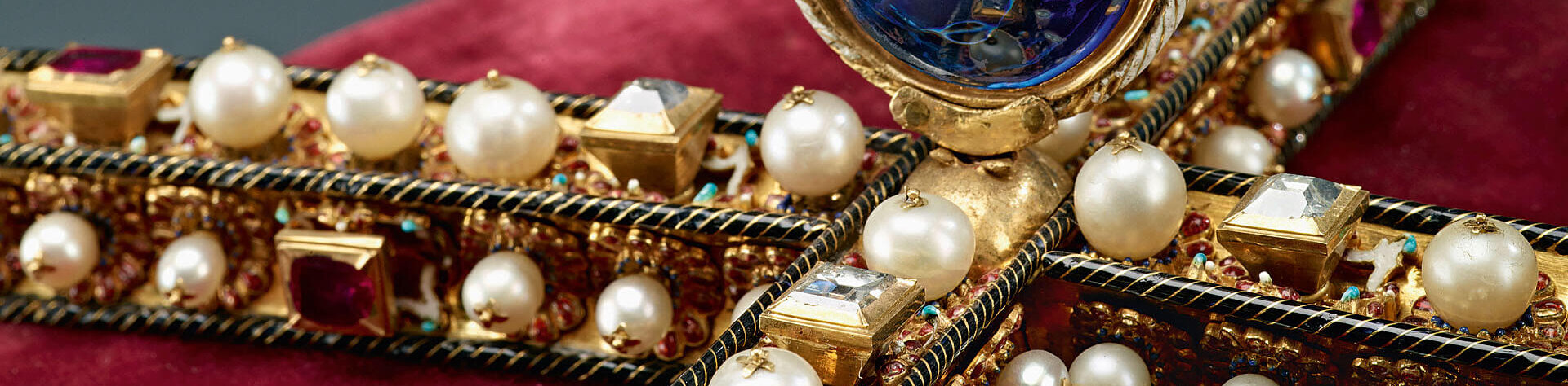 In kaum einem anderen Objekt des Stiftes Klosterneuburg sind sakrale und politische Bedeutung derart eng miteinander verwoben. Kaum ein anderes Objekt weist auch einen derartigen materiellen Wert auf – alles, was hier verarbeitet wurde, ist von erlesenster Qualität: Gold, Email, Edelsteine, Perlen, Samt und Hermelin.