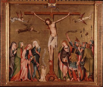Die Tafel gehört zu einem Johannes/Passionsaltar (GM 73-76 Johannesfolge, GM 77-80 Passionsfolge)