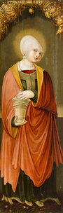 Die Tafel war einst Teil eines Flügelaltars (GM 99 - 101).