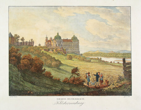 Diese kolorierte Lithografie zeigt die Ansicht von der heutigen Pater-Abel-Straße auf das Stift Klosterneuburg und dessen Umgebung. Sie gehört zu dem 1826 in Wien veröffentlichten Werk „Donau-Ansichten nach dem Lauf des Donaustromes von seinem Ursprung bis zu seinem Ausfluss in das Schwarze Meer“, das insgesamt 264 Lithografien umfasst. [1]