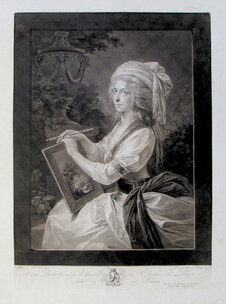 Die Inschrift des Bildes verrät uns einiges über die Entstehung des Blattes. Hier gibt es eine persönliche Widmung von Füger, wo er seine Dankbarkeit und Ergebenheit gegenüber den Eltern der Gräfin ausdrückt. Dies verweist auf eine engere Beziehung zur Familie, denn Füger hielt sich tatsächlich in deren Kreis auf und kannte die Eltern der Gräfin. [2] Zudem ist es nicht das einzige Porträt von ihr, da Füger im selben Jahr noch ein zweites schuf [3], und zehn Jahre darauf ein weiteres. [4]