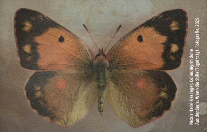 Die Fotografien der oberösterreichischen Künstlerin zeigen präparierte Schmetterlinge aus der Zeit ihrer Kindheit – einer Zeit, in der sie noch selbstverständlicher Teil unseres Alltags waren. Sie sind ein ästhetisches Plädoyer für den Erhalt der Artenvielfalt und ein stiller Appell, das fragile Gleichgewicht von Natur und Mensch zu bewahren.