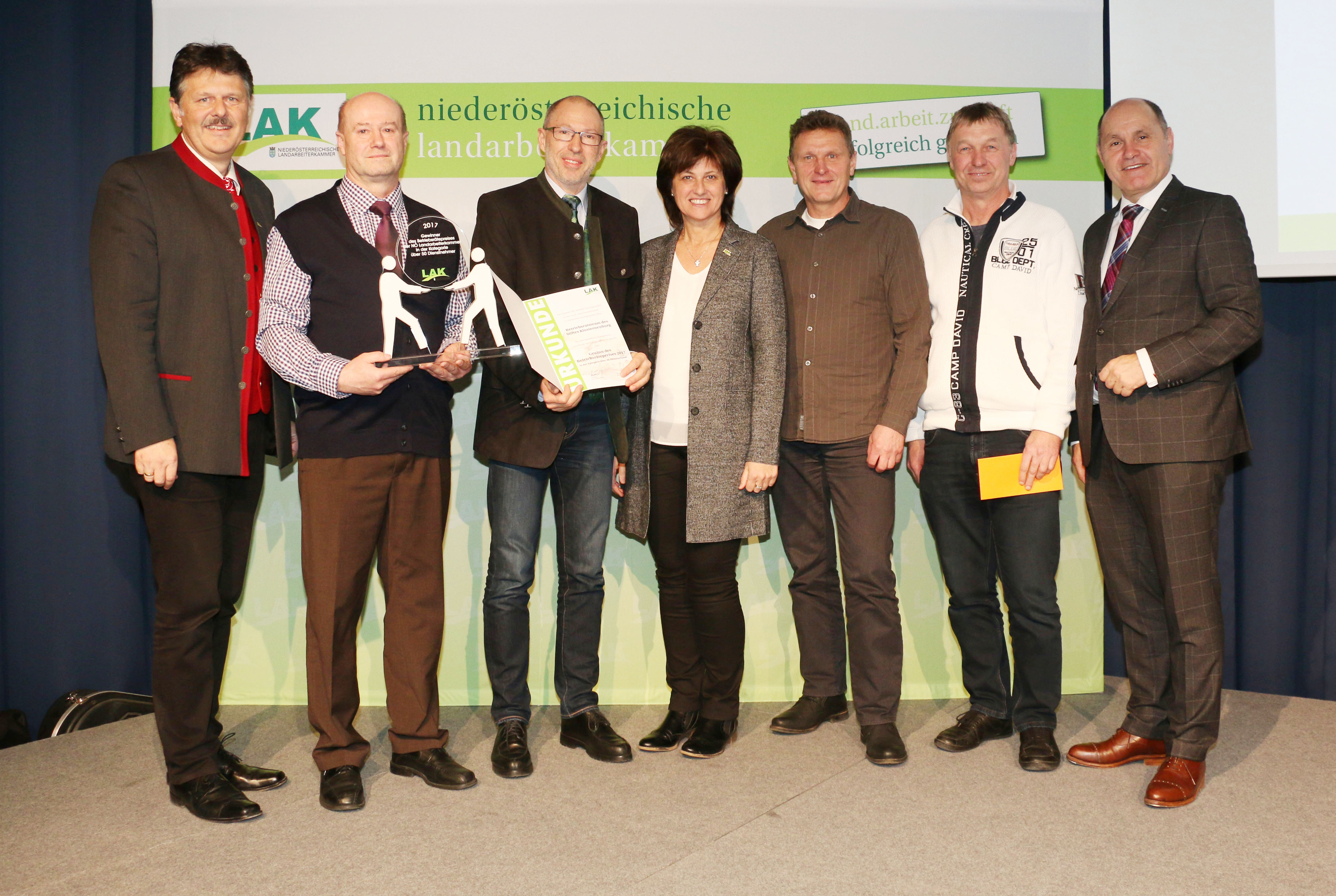 Die Niederösterreichische Landarbeiterkammer verlieh den LAK-Betriebsrätepreis in der Kategorie „Großbetriebe über 50 Mitarbeiter“ den Betriebsräten des Stiftes Klosterneuburg.