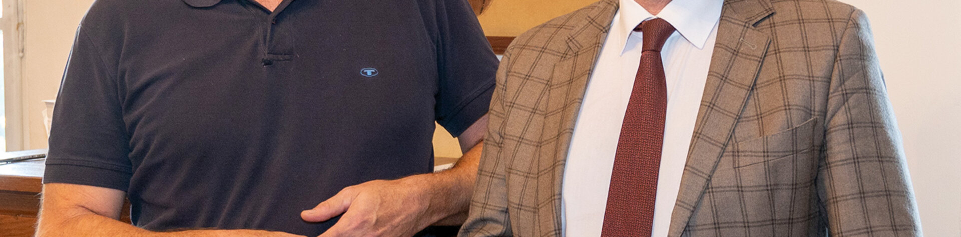 Foto: Stiftsarchivar Dr. Karl Holubar mit Bundesminister Dr. Martin Polaschek vor einer Darstellung