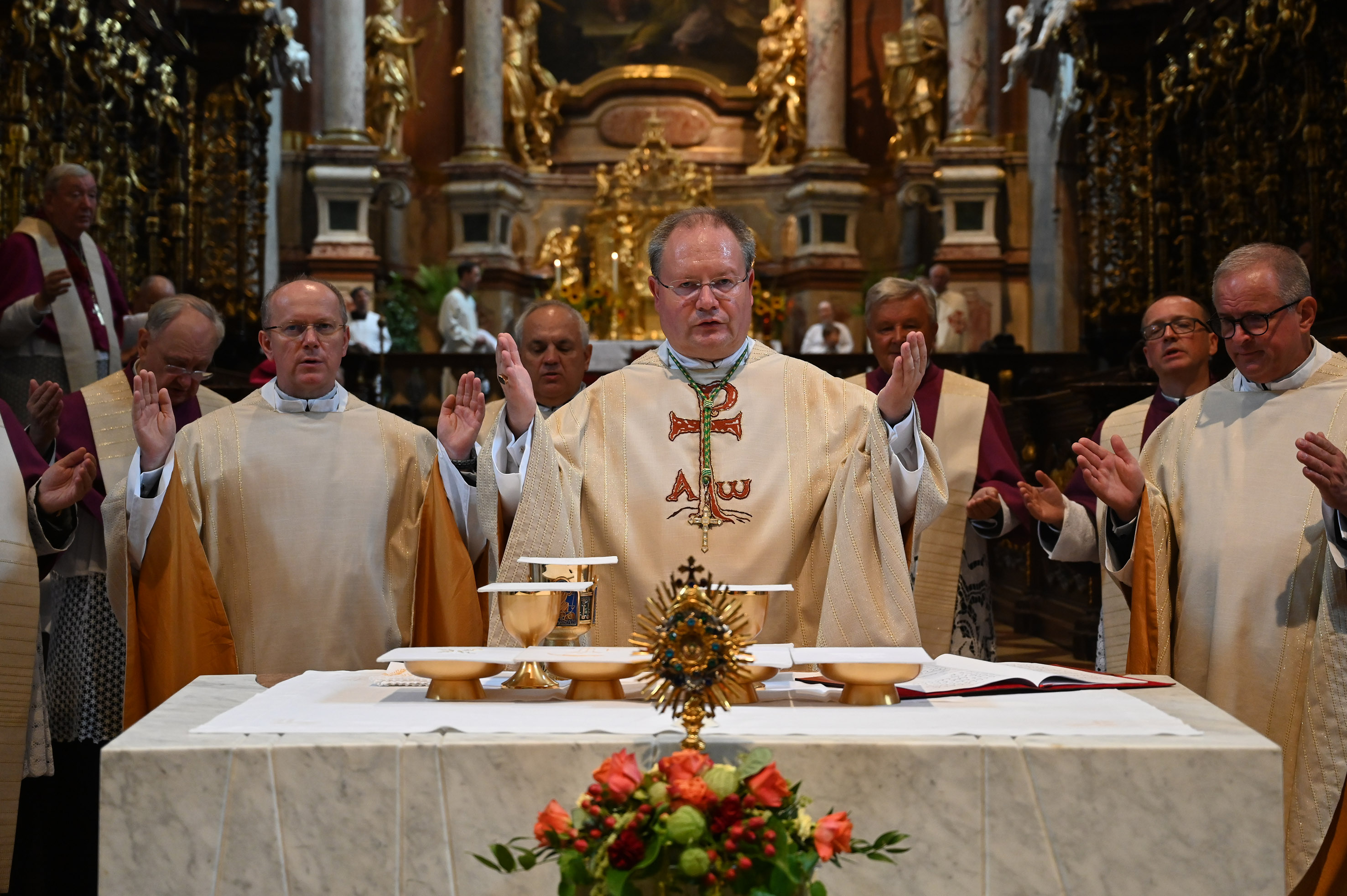 Foto: Propst Anton Höslinger und Konzelebranten in der Stiftsbasilika Klosterneuburg.