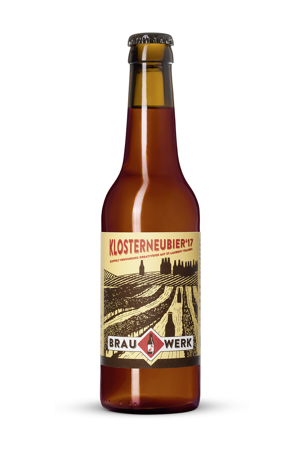 22.11.2017Hergestellt aus den klassischen Rohstoffen, Gerstenmalz und Weintrauben, und danach mit Wein- sowie Bierhefe doppelt vergoren, vereint das „KlosterneuBier ‘17“ die jeweils einzigartigen Charakteristika von Bier und Wein. Lebhafte Säure aus der St. Laurent Traube, kräftige Bittere aus Hopfen und Weinmaische, fruchtig im Antrunk und ein mächtiges Aroma machen die 2017er Edition unverkennbar.
