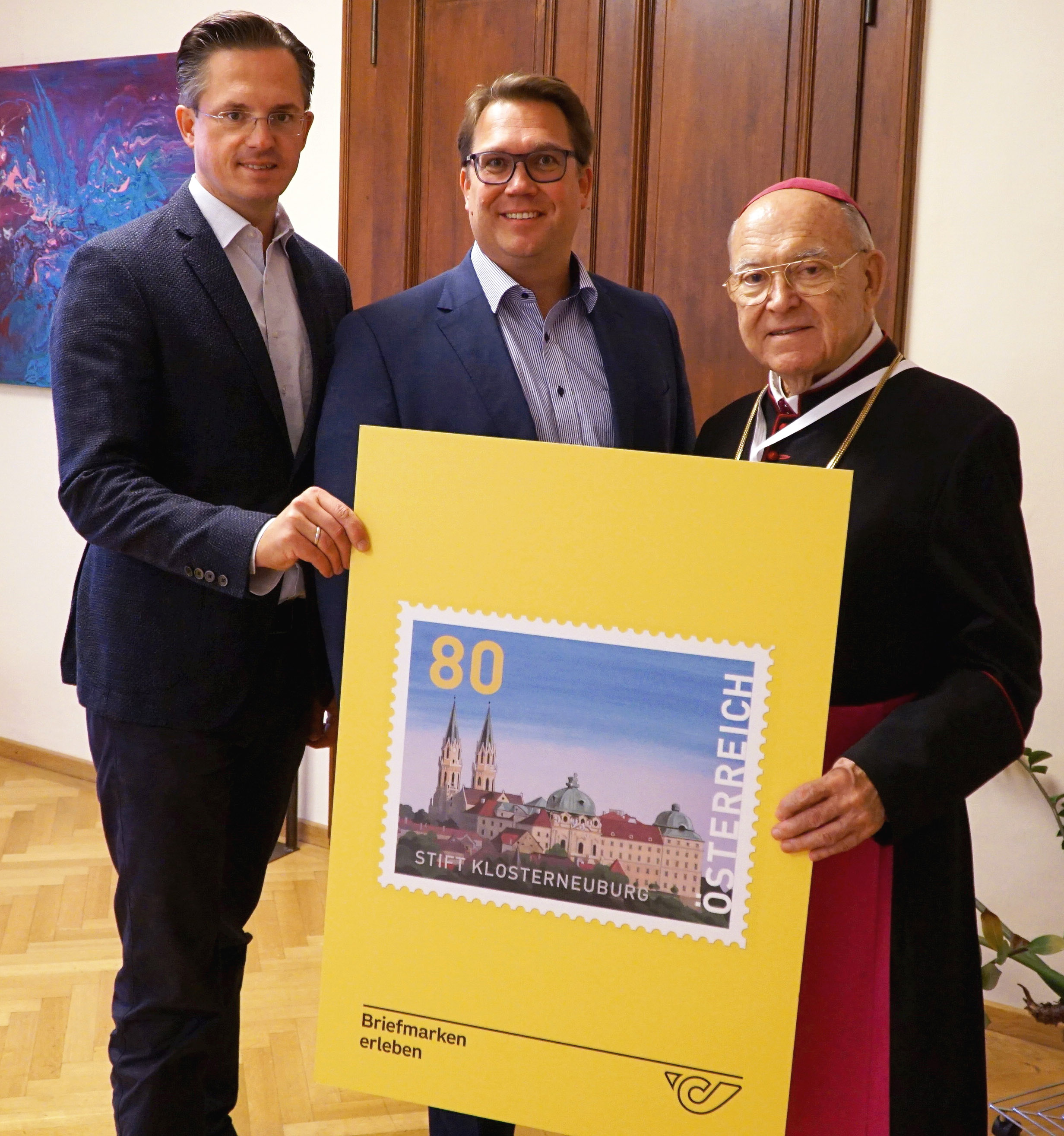Jetzt mit Oktober ist das Stift Klosterneuburg als Briefmarke erhältlich – mit einer Auflage von 1 Million Stück. Stefan Nemeth, MBA von der Österreichischen Post AG überreichte Propst Bernhard Backovsky und Bürgermeister Mag. Stefan Schmuckenschlager zum Start offiziell die ersten Marken mit dem neuen Motiv.