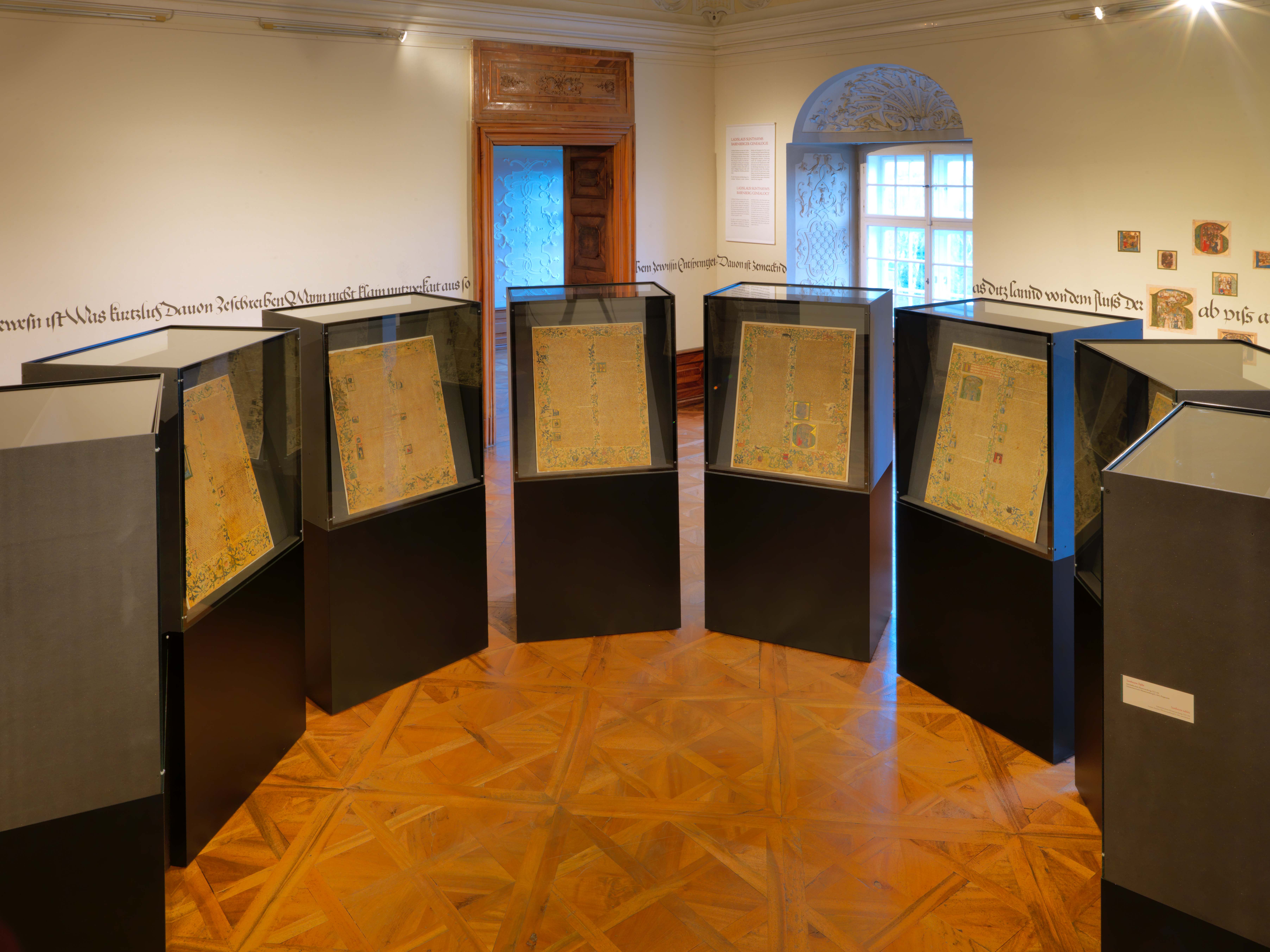 Die Ausstellung zeigt Erstausgaben des von Maximilian I. in Auftrag gegebenen Werkes „Theuerdank“.