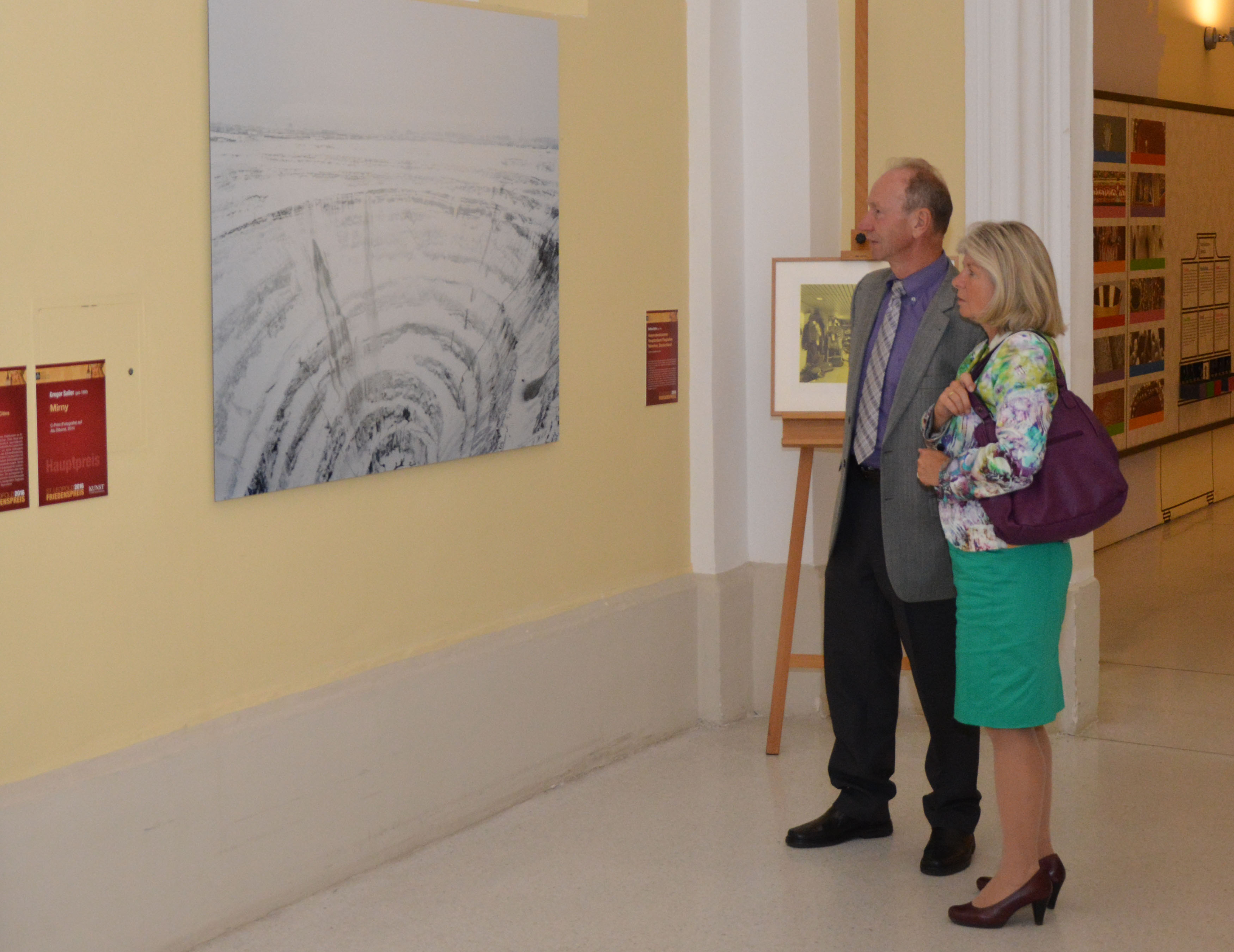 Ausgehend von der Bibelstelle „Da sprach Gott zu ihm: „Du Narr! Noch diese Nacht wird dein Leben von dir zurückgefordert. Wem wird dann all das gehören, was du aufgehäuft hast?“ So geht es jedem, der nur für sich selbst Schätze sammelt, aber vor Gott nicht reich ist“ (Lukas 12,20) leitet sich „Die Macht der Gier“ als Thema ab. Aus den rund 700 eingereichten Werken wurden von einer Jury die 24 Besten für die Finalrunde ausgewählt und diese sind bis Ende 2016 in der Sala terrena zu besichtigen. Der nach dem Stiftsgründer benannte „St. Leopold Friedenspreis“ zeichnet Kunstwerke aus, die sich kritisch mit humanen und gesellschaftspolitischen Themen auseinandersetzen. Es gibt keinerlei Vorgaben, was die Ausführung der Werke betrifft. Nur inhaltlich gibt es ein - meist der Bibel entnommenes - Motto, das zum Nachdenken auffordern soll. Das Thema 2016 wurde durch Abtprimas Propst Bernhard Backovsky gewählt, leitet sich aus der oben zitierten Bibelstelle ab und lautet: „Die Macht der Gier“. Bereits zum siebenten Mal wurde der mit 12.000,- Euro dotierte internationale Kunstpreis im Rahmen eines Festaktes im Marmorsaal des Stiftes Klosterneuburg verliehen. Höchst beeindruckende Werke vom großformatigen Bild über vielfältige skulpturale Objekte bis hin zur sozialkritischen Fotografie wurden eingereicht. Eine fachkundige 9-köpfige Jury wählte in mehreren Sitzungen aus rund 700 Einsendungen die Sieger. Der Hauptpreis mit 10.000,- Euro ging an den Tiroler Gregor Sailer für sein Werk „Mirny“ aus der Serie „Closed Cities“. Das Langzeitprojekt untersucht geschlossene Stadtformen in Algerien, Argentinien, Aserbaidschan, Chile, Katar und Russland. „Ich bewege mich in diesem künstlich geschaffenen, durch Mauern oder die ihn umgebende lebensfeindliche Landschaft hermetisch abgeriegelten urbanen Raum, um seine verborgene Existenz sichtbar zu machen. Es sind Orte der Rohstoffförderung, Militäranlagen, Flüchtlingslager oder aber Gated Communities für Wohlhabende. Diese zeitlich begrenzten urbanen Siedlungsformen repräsentieren auf prägnante Weise die Herausforderungen, denen die Menschheit Anfang des 21. Jahrhunderts ausgesetzt ist: schwindenden Ressourcen, Klimawandel, politischen Konflikten oder dem Bedürfnis nach uneingeschränkter Sicherheit. Die vorliegende Arbeit entstand in der extrem exponierten sibirischen Diamantenstadt Mirny am Polarkreis, welche am Rande des zweitgrößten Tagbaues der Welt entstand. Temperaturen bis -75°C. Permafrost.“, so der Künstler Gregor Sailer über sein Werk. Je ein Förderpreis von á 1.000,- Euro wurde an die beiden Künstler Frenzy Höhne und Wadim Rakowski vergeben. Die Moral sowie die Einsatzbereitschaft im Bereich der Nachhaltigkeit der Konsumenten thematisiert Frenzy Höhne mit ihrem Werk „Auslage“. Den Durst nach Geld hat den Künstler Wadim Rakowski zur Bildung einer eigenen Währung gebracht. Die Macht und das Geld verfolgen mich – „Ohne uns haben Sie kein Recht auf die Existenz.“ Die Ausstellung der nominierten und ausgezeichneten Werke des St. Leopold Friedenspreis 2016 ist vom 29. September bis 31. Dezember 2016 im Stift Klosterneuburg zu besichtigen. Das preisgekrönte Werk wird nach der Ausstellung in den Bestand des Stiftsmuseums, genauer, der „Galerie der Moderne“, aufgenommen.