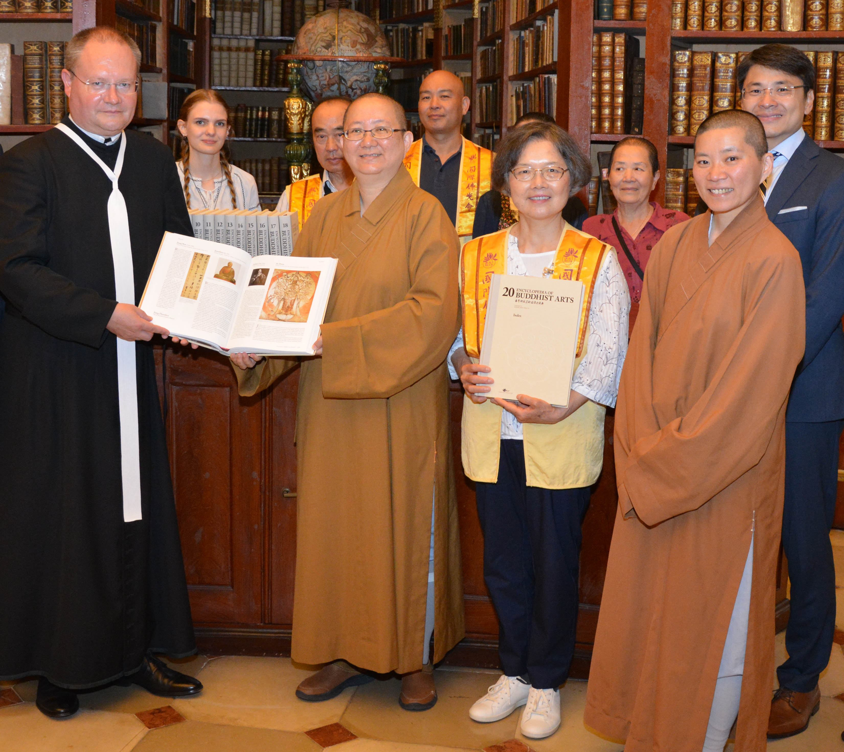 Die Enzyklopädie umfasst vier Bände über buddhistische Architektur, fünf über Grotten und Höhlen, vier über buddhistische Skulpturen, drei über Malerei, einen über Kunsthandwerk, einen über Kalligraphie und Siegel, einen über Biografien, sowie einen Index und enthält fast 3,8 Millionen chinesische Schriftzeichen und mehr als 15.000 Bilder. „Der vollständige Band ist im Wesentlichen ein Kompendium, das eine Lücke in taiwanesischen Veröffentlichungen zur buddhistischen Kunst schließt, und dieses als Geschenk an die Bibliothek würde zweifellos Forschern und Studenten im Bereich der buddhistischen Kunst zugute kommen“, so die Meisterin Jue Rong, Leiterin des Fo Guang Shan Tempel in Wien.