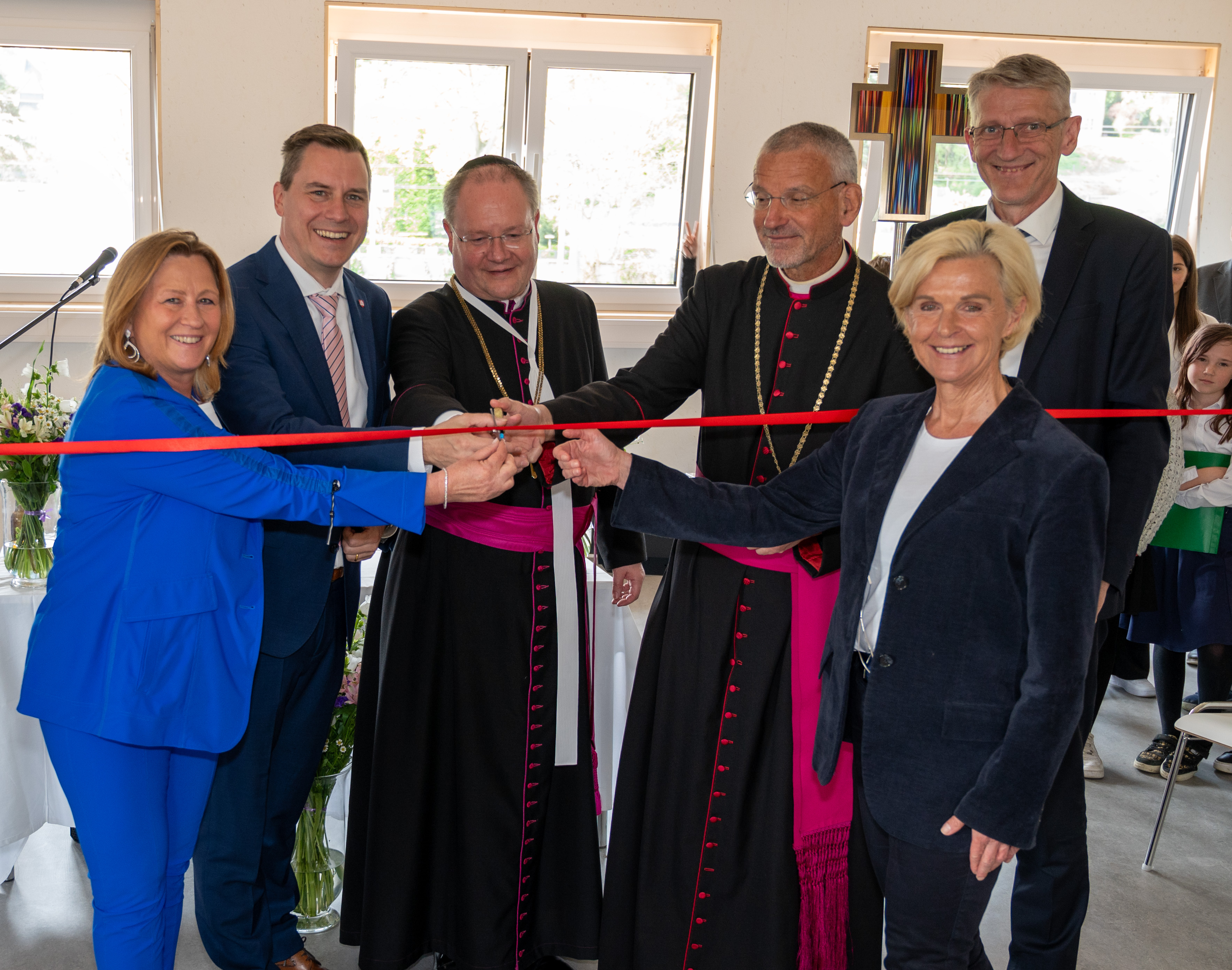 Mit einer Eröffnungs- und Segnungsfeier wurde am Donnerstag den 11- April, durch Generalvikar Nikolaus Krasa und Propst Anton Höslinger, die Erweiterung des privaten Gymnasiums Klosterneuburg (pGK) eingeweiht. Das neue Gebäude bietet Platz für die Oberstufe und einige Sonderunterrichtsräume. Zahlreiche Ehrengäste feierten den Gottesdienst mit und freuten sich mit der Schulgemeinschaft, als im Anschluss das Gebäude auch symbolisch seiner Bestimmung übergeben wurde – mit einem beherzten Scherenschnitt durch das rote Eröffnungsband.