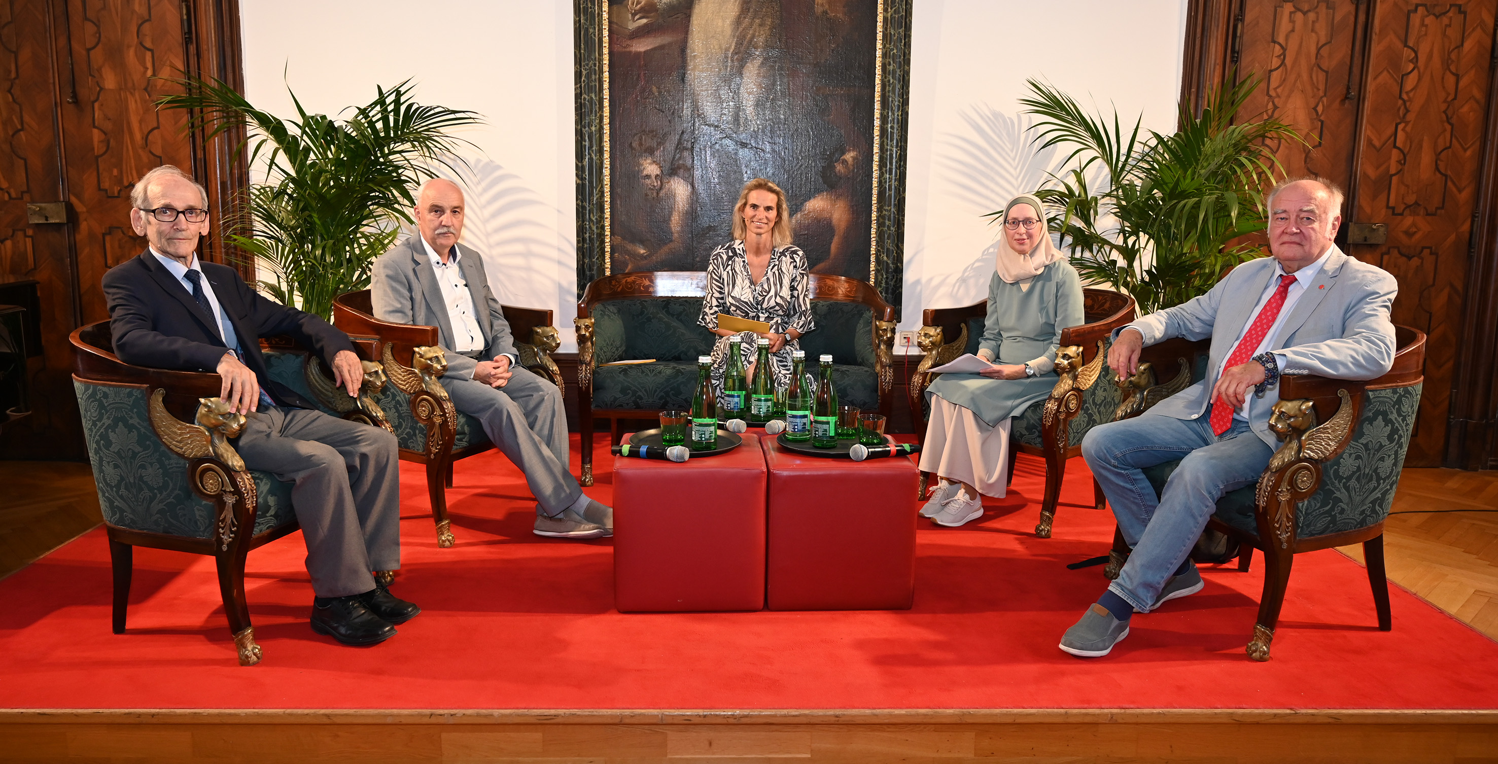 09.09.2022Am Podium diskutierten em. Univ.-Prof. Dr. Johann Figl (Religionswissenschaftler), Gerhard Weissgrab (Präsident der Österreichischen Buddhistischen Religionsgesellschaft (ÖBR)) Carla Amina Baghajati (Leiterin des Schulamtes der IslamischenGlaubensgemeinschaft in Österreich (IGGiÖ)), Univ.-Prof. Dr. Wolfgang Palaver (Theologe, Schwerpunkt: Systematische Theologie u. Christliche Gesellschaftslehre). Zur Sprache kamen Punkte wie die fehlenden positiven „Role Models“, die Instrumentalisierung der Religion sowie das Ego der Menschen als Kernpunkte für Konflikte. Der Dialog und die Fähigkeit zum Pluralismus sowie religiöseBildung in der Schule waren weitere Ansätze.