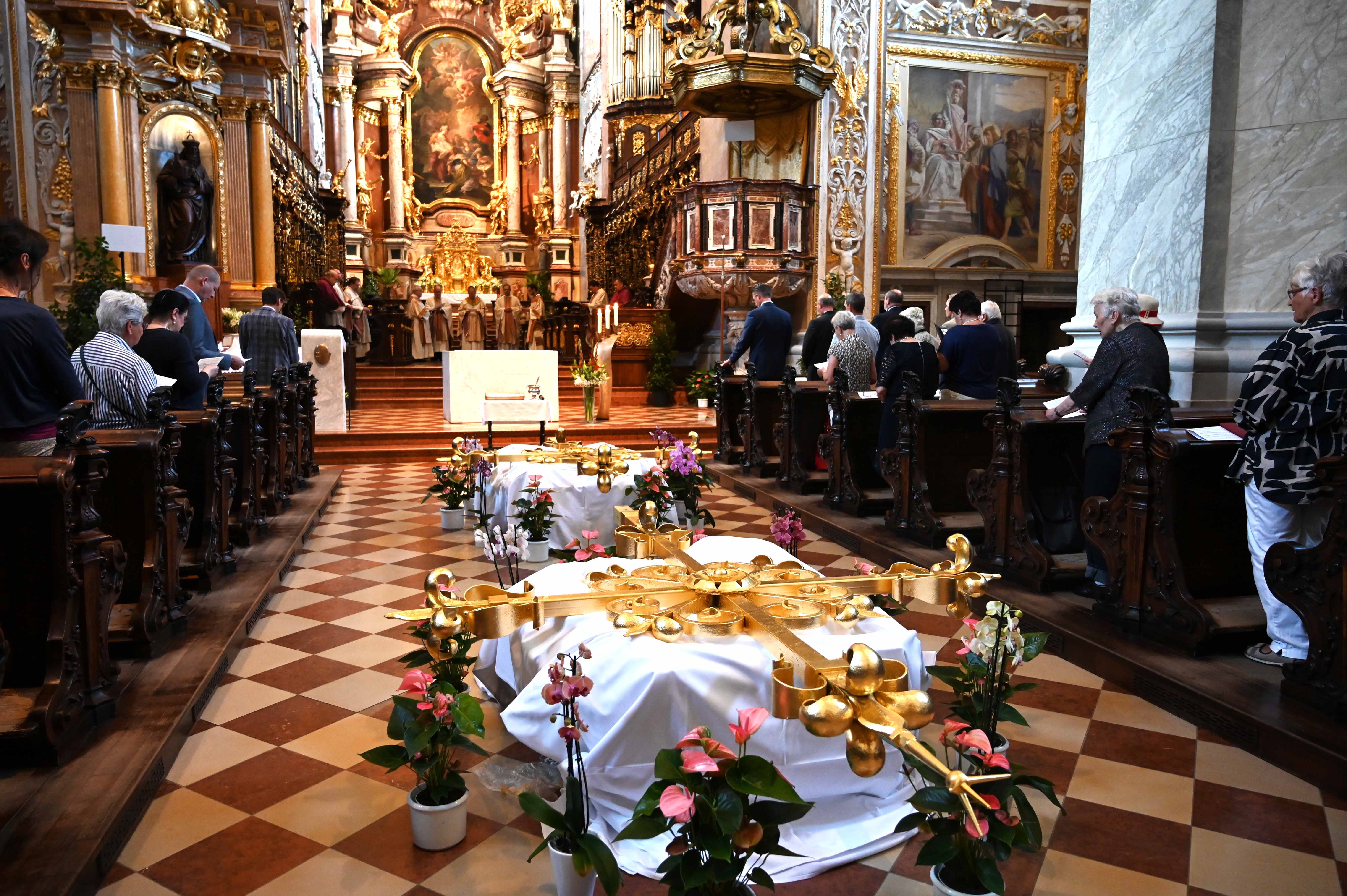 Die im Vorjahr zur Renovierung abgenommenen Kirchturmkreuze wurden am 12. September 2023 wieder auf die Spitzen der beiden Kirchtürme des Stiftes Klosterneuburg aufgesetzt. Zwei neue Zeitkapseln wurden in den Kugeln unterhalb der beiden Kreuze hinterlegt.