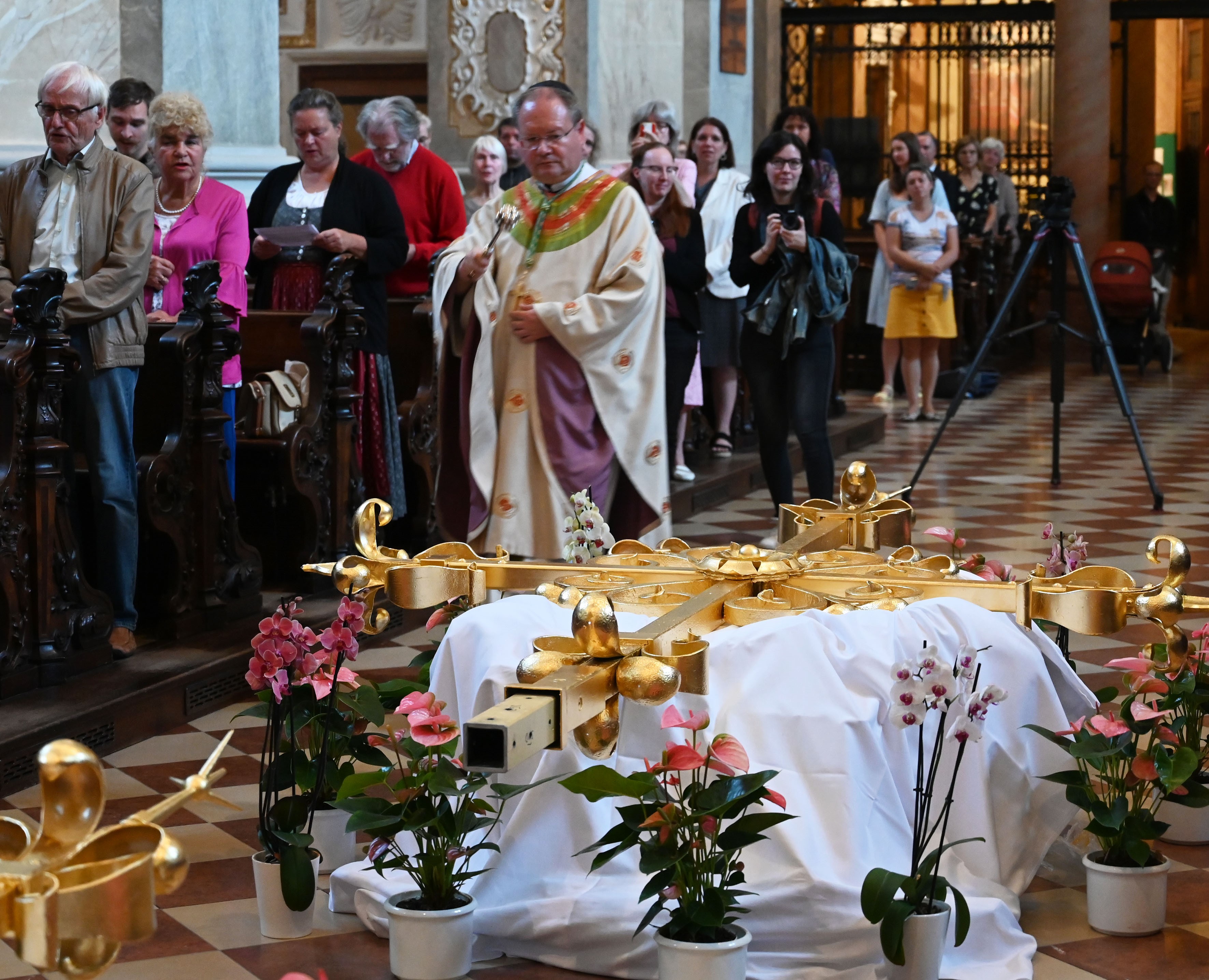 13.09.2023„Das Kreuz als christliches Symbol setzen wir ganz bewusst auf unsere Kirchtürme. Nicht als schmückende Accessoire in luftiger Höhe, sondern als Zeichen unseres Glaubens, den gekreuzigten Jeus Christus. Dort sollen sie von weitem strahlen, sie sollen uns Kraft geben, wenn wir unsere Blicke nach oben richten“, so Propst Anton Höslinger in seiner Predigt zur Segnung der Kreuze und Zeitkapseln.