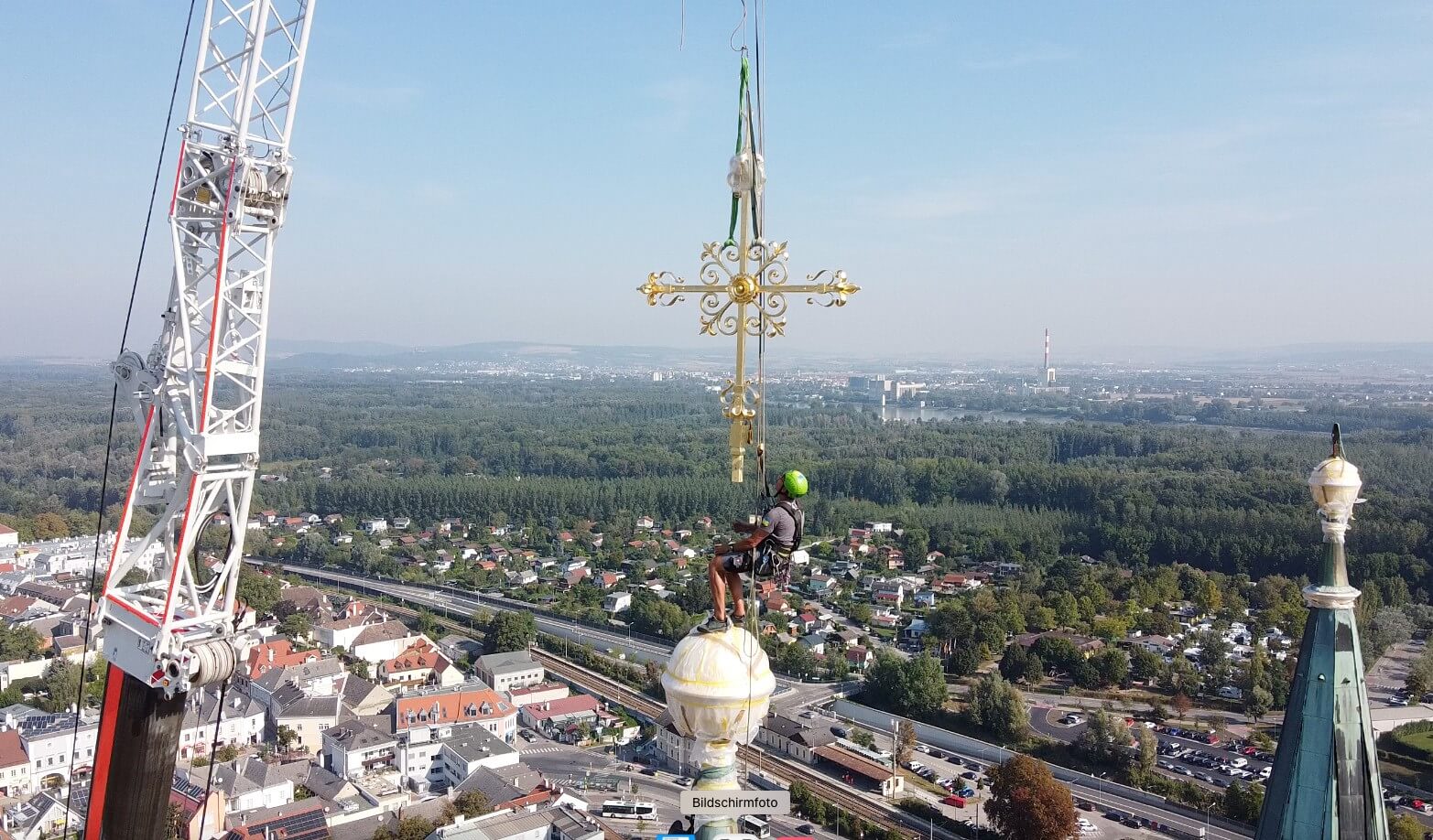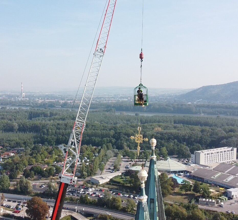 Kreuze mit Zeitkapsel auf Kirchturmspitze gesetzt