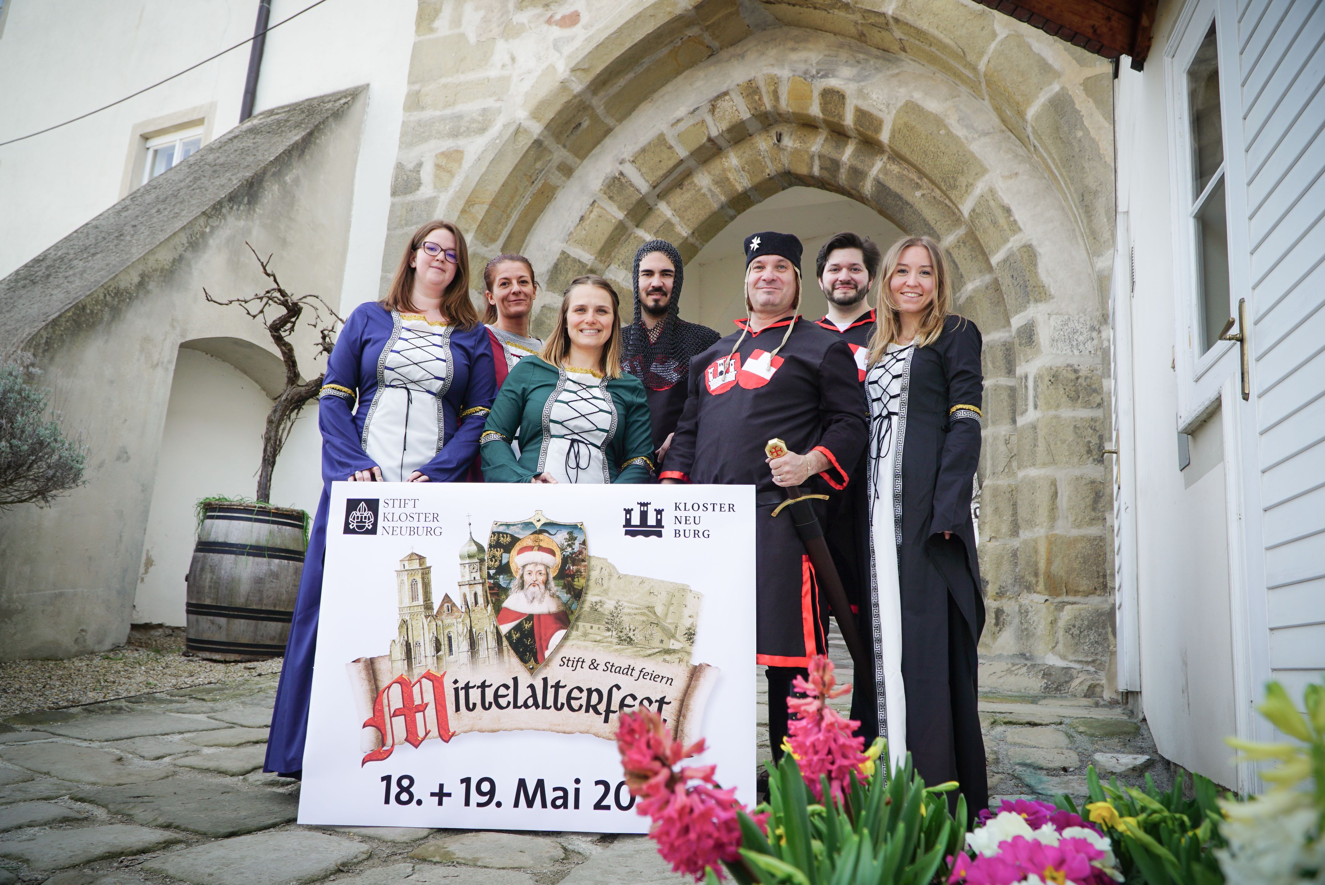 Bildtext: 2019 taucht Klosterneuburg tief ins Mittelalter ein - Julia Hofmeister, Marktamt, Nicola Askapa, Stadtmarketing, Kerstin Friedl, Stift Klosterneuburg, Matthias Hofmeister, Stift Klosterneuburg, Alexander Lung, Marktamt, Alexander Potucek, Stift Klosterneuburg, Leona