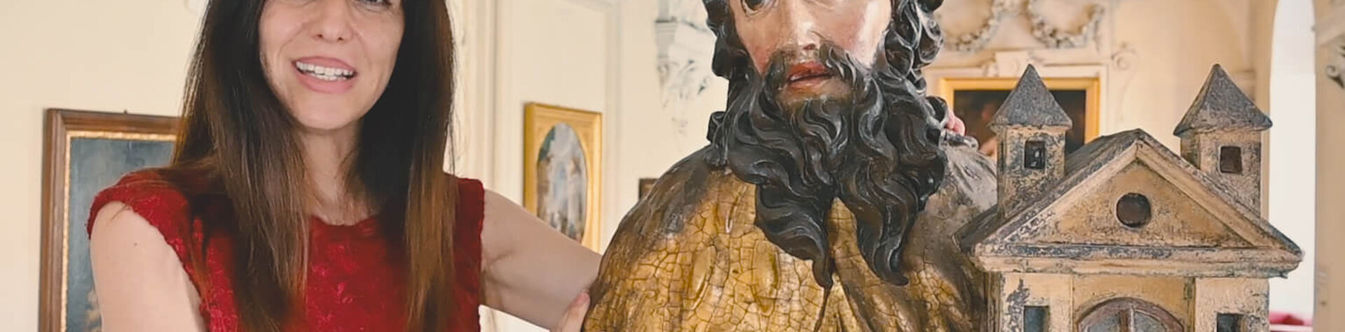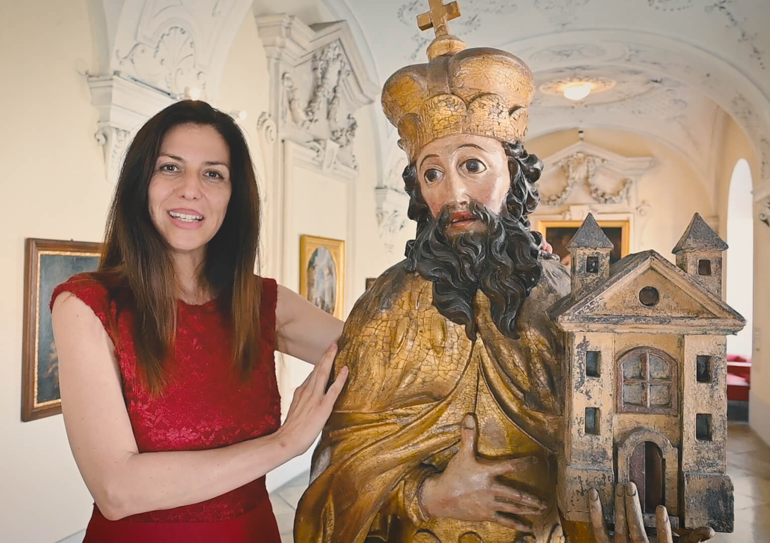Bild: Melanie Thiemer mit dem hl. Leopold (Foto Stift Klosterneuburg, Abdruck honorarfrei)
