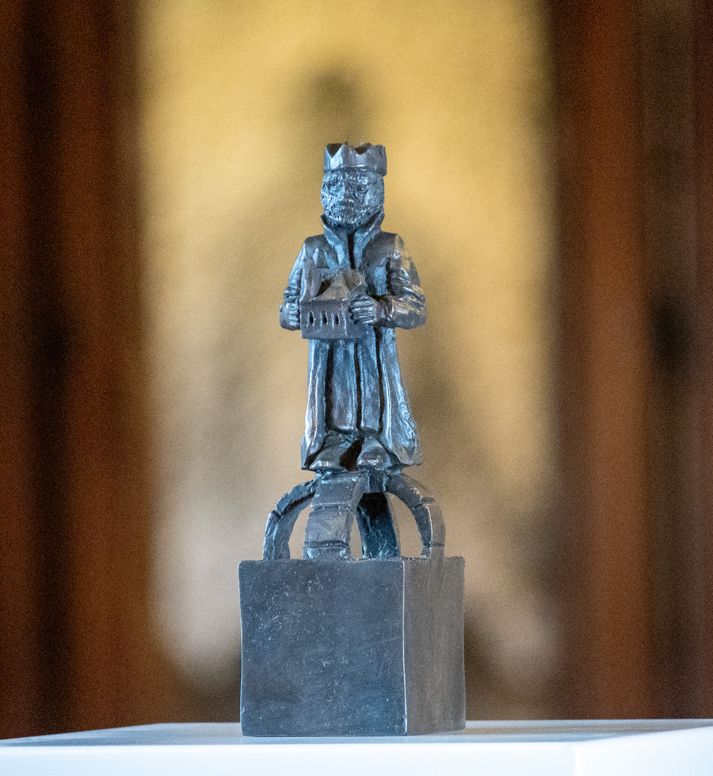 Die Gewinnerin oder der Gewinner des St. Leopold-Friedenspreises erhält seit jeher eine bronzene Statuette des Hl. Leopold. Der Wiener Bildhauer Markus Redl gestaltete eine neue Interpretation des Stiftsgründers als Friedensbotschaft, die ab 2025 zum Einsatz kommt.