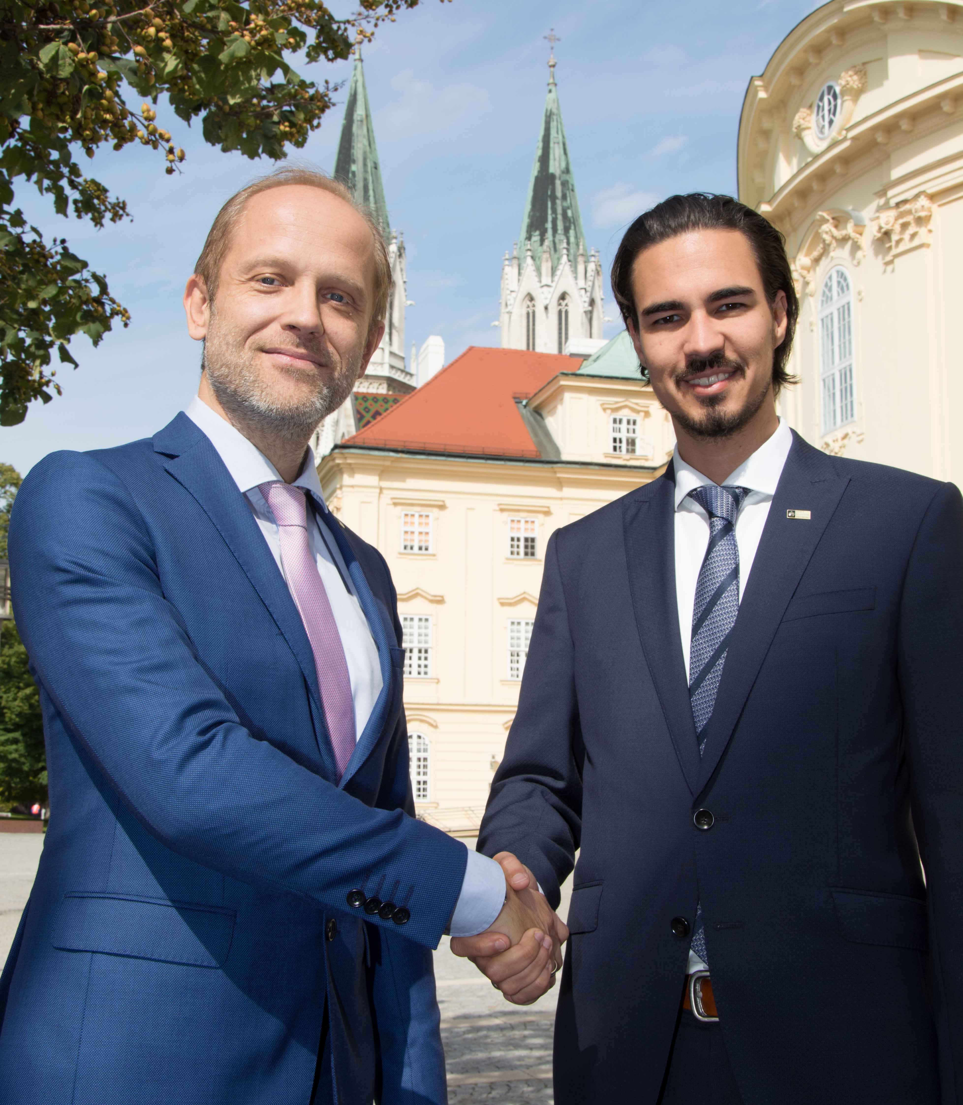 Gottfried Fragner übergibt seinem Nachfolger Matthias Hofmeister-Kiss die Leitung des Kulturbetriebes des Stiftes Klosterneuburg. - Foto: W. Hanzmann, Abdruck honorarfrei
