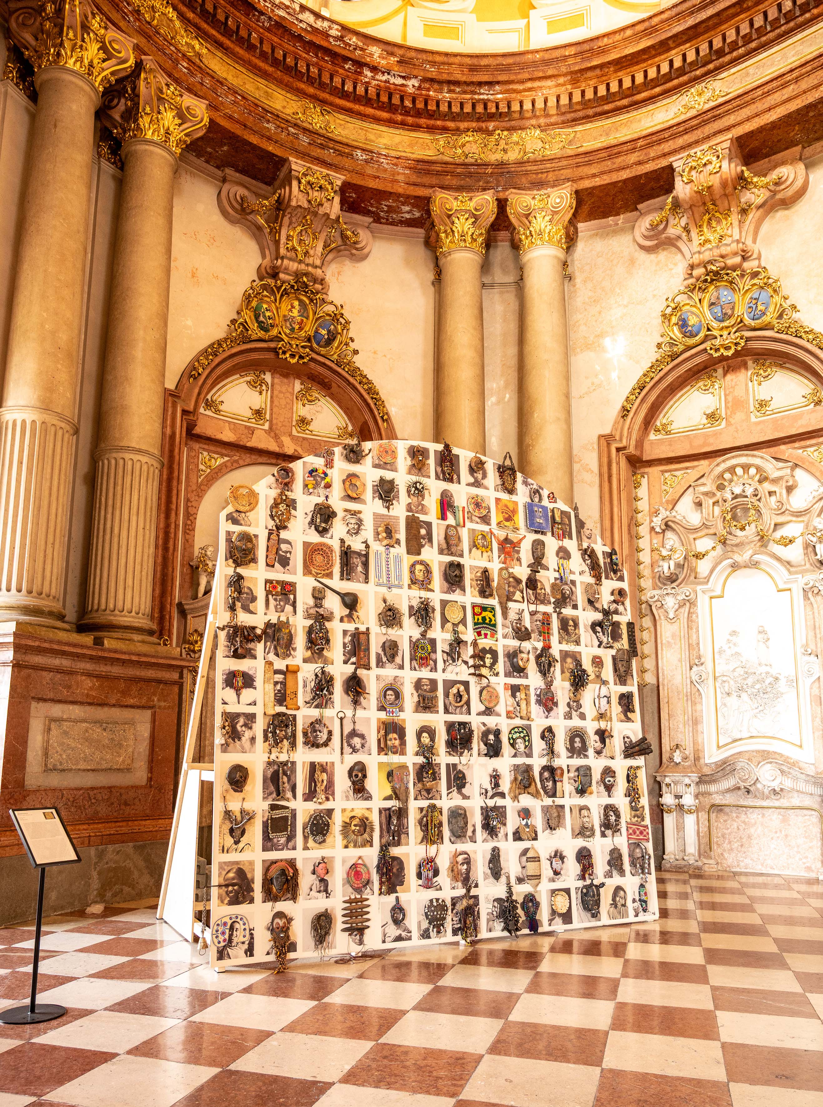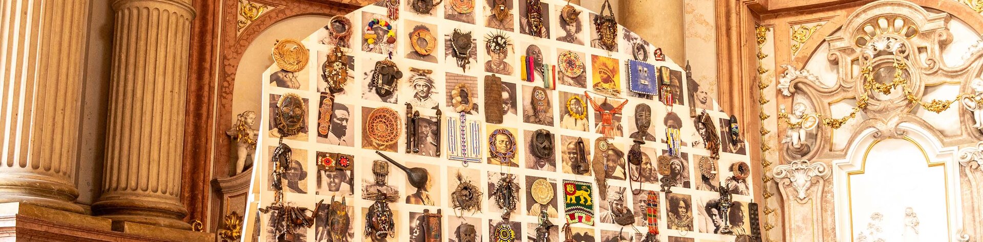 Inspiriert von koptischen Handschriften, die er in der Stiftsbibliothek entdeckte, entstanden mehrere große textile Wandbehänge und Papierarbeiten, die in der Galerie der Moderne und im Gang zur Schatzkammer ausgestellt sind. Im Marmorsaal ist die monumentale Installation Your Gaze Makes Me zu sehen, in der Wendemagegn Belete Porträts von Menschen verarbeitete, die aus der Zeit des äthiopisch-italienischen Kolonialkrieges 1935 – 1941 stammen und die mit Kultgegegenständen aus ganz Afrika kombiniert wurden.