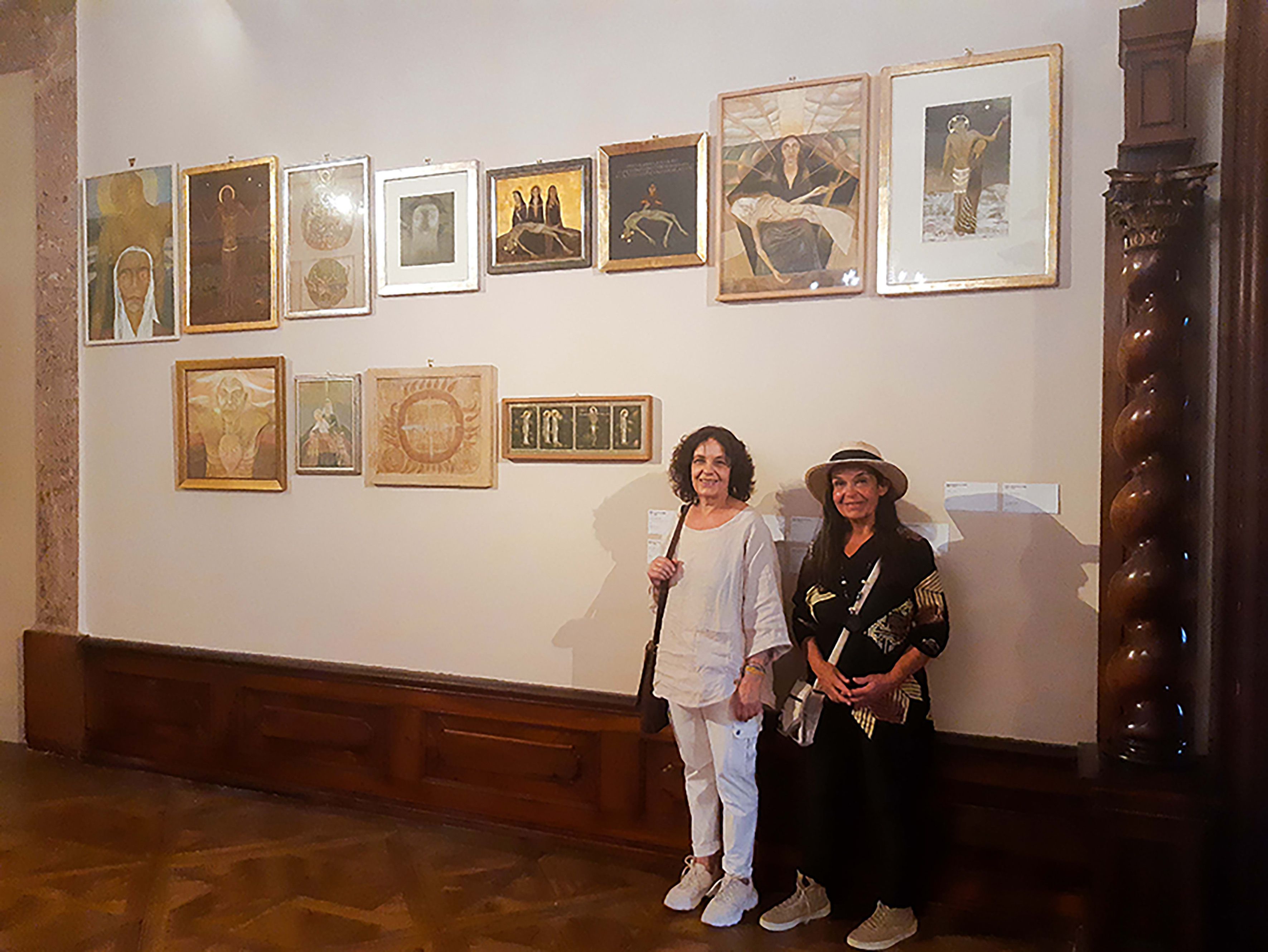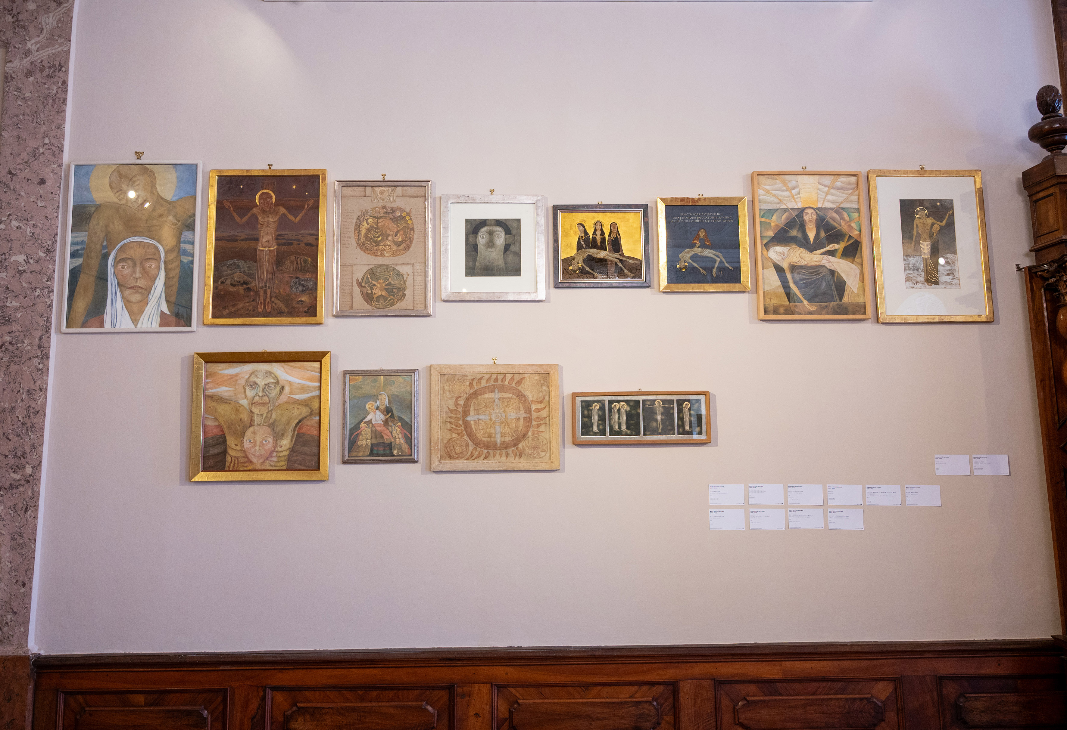 Auf einer Art Ikonenwand wird eine Gruppe von religiösen Werken der 2023 verstorbenen Künstlerin Maria Hofstätter-Steiner gezeigt. Dank der großzügigen Leihgabe ihrer Töchter können Werke aus allen Schaffensperioden gezeigt werden.