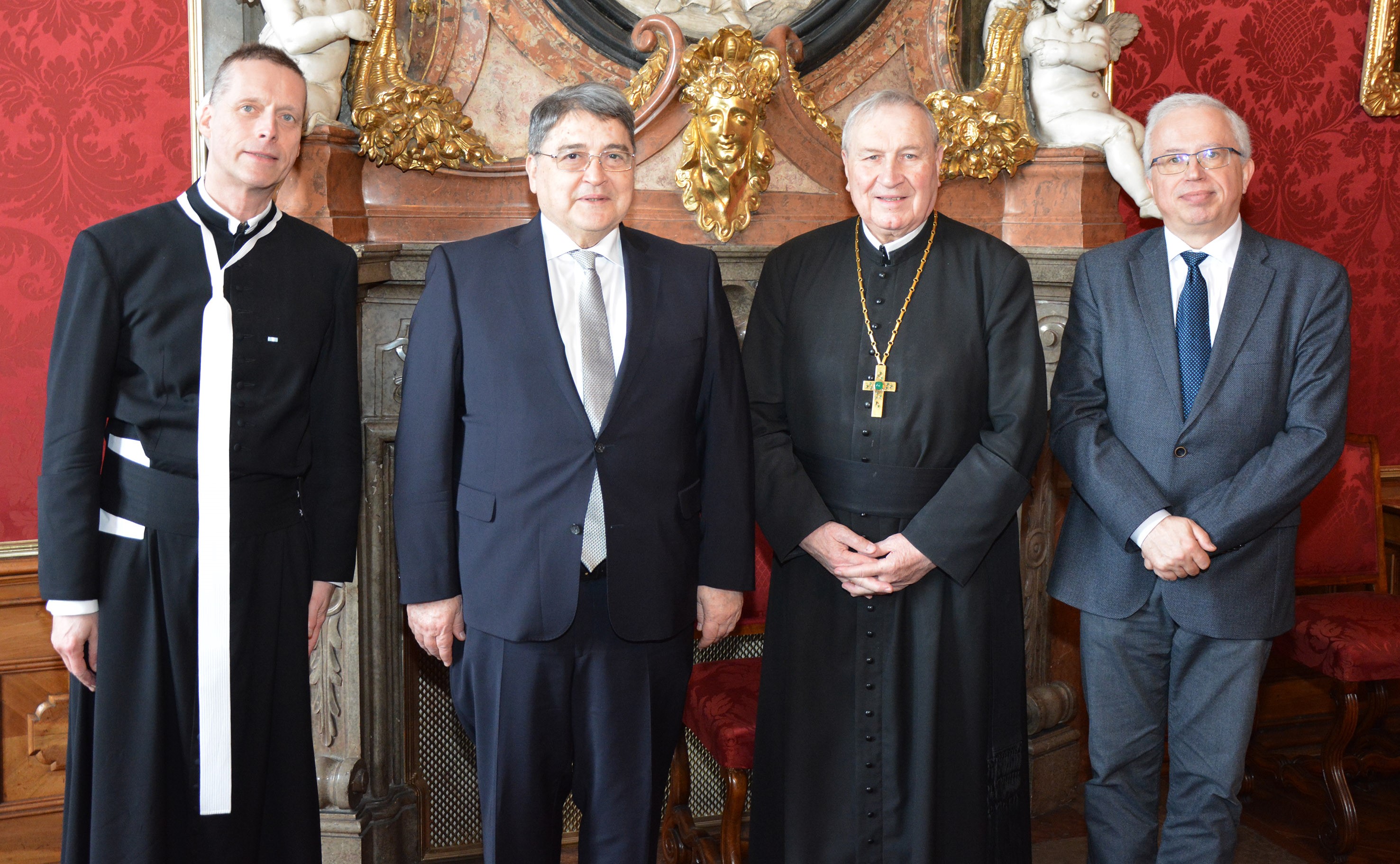 Danach ging es zum Gedankenaustausch in die Prälatur. Dort begrüßte sie Administrator Maximilian Fürnsinn. Es gab eine vertiefende Einführung zur jahrzehntelangen Rumänien-Hilfe des Stiftes, zur kulturellen Zusammenarbeit und von Seiten des Botschafters die Bitte, dass das Stift als „Rumänien-Experte“ mithelfe möge bei der Verbesserung und Auffrischung der aktuell schwierigen bilateralen Beziehungen beider Länder.