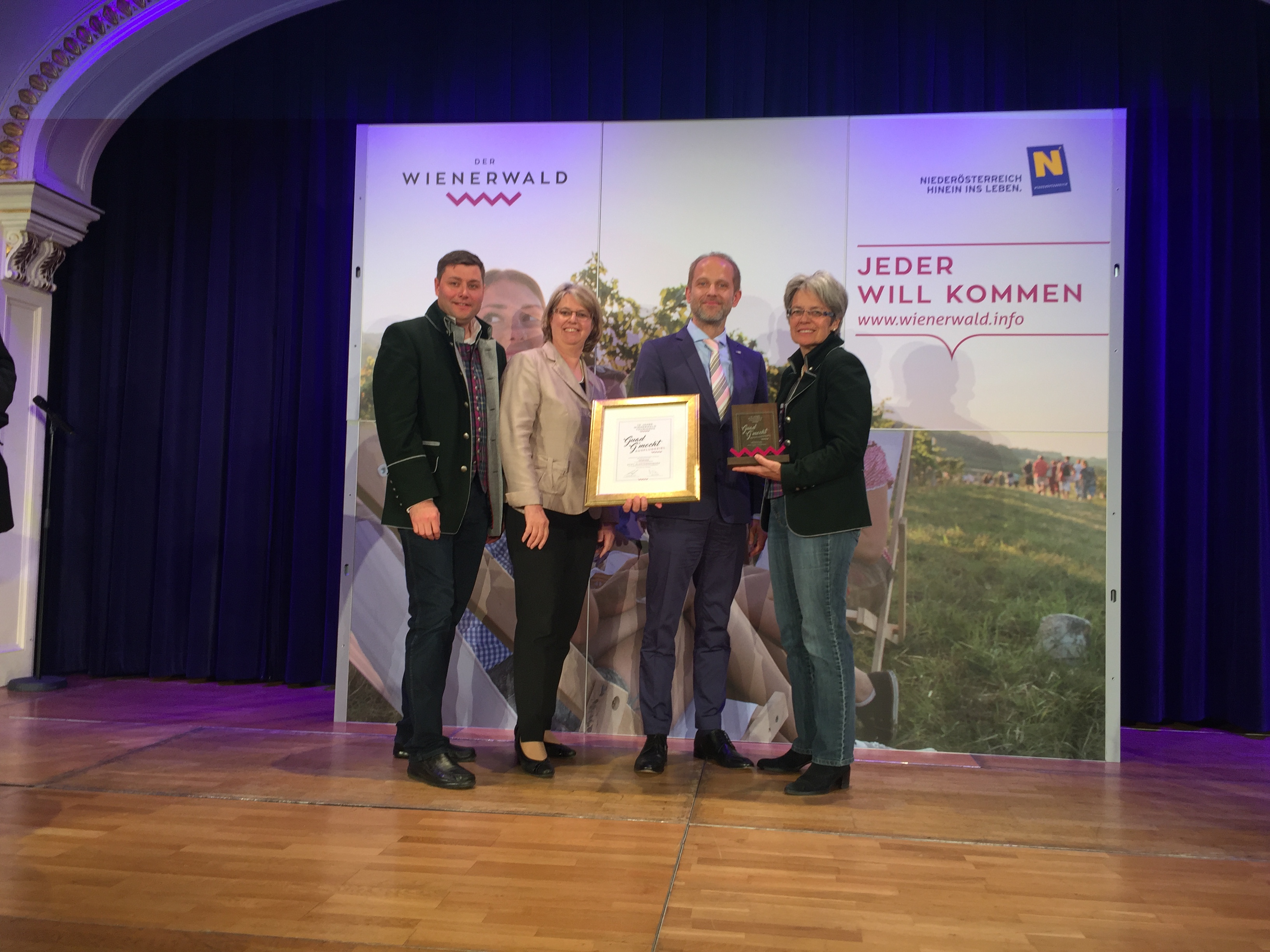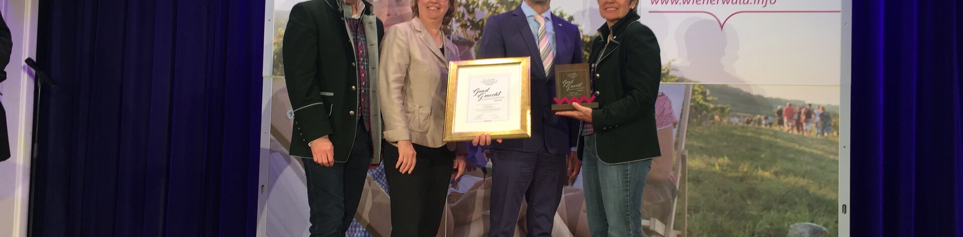 12.05.2017Zum ersten Mal in der zehnjährigen Geschichte der Wienerwald Tourismus GmbH wurden die fünf besten Betriebe der Tourismusregion Wienerwald mit den „Guad G´mocht Preis“ ausgezeichnet. Gewinner in der Kategorie Ausflugsziel wurde das Stift Klosterneuburg. Überreicht wurde die Auszeichnung von Tourismuslandesrätin Dr.in Petra Bohuslav an Gottfried Fragner, Kulturleiter des Stiftes Klosterneuburg.