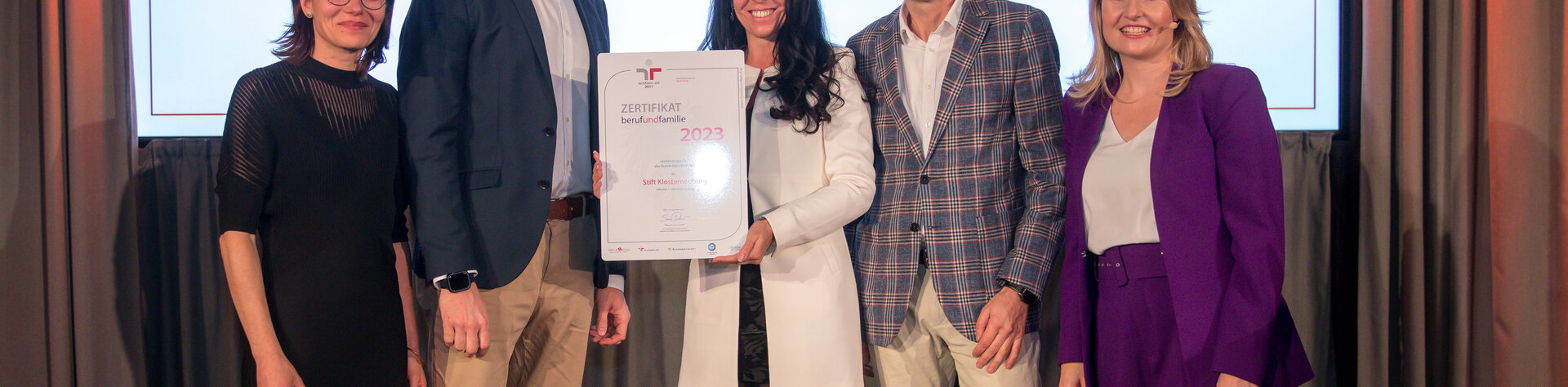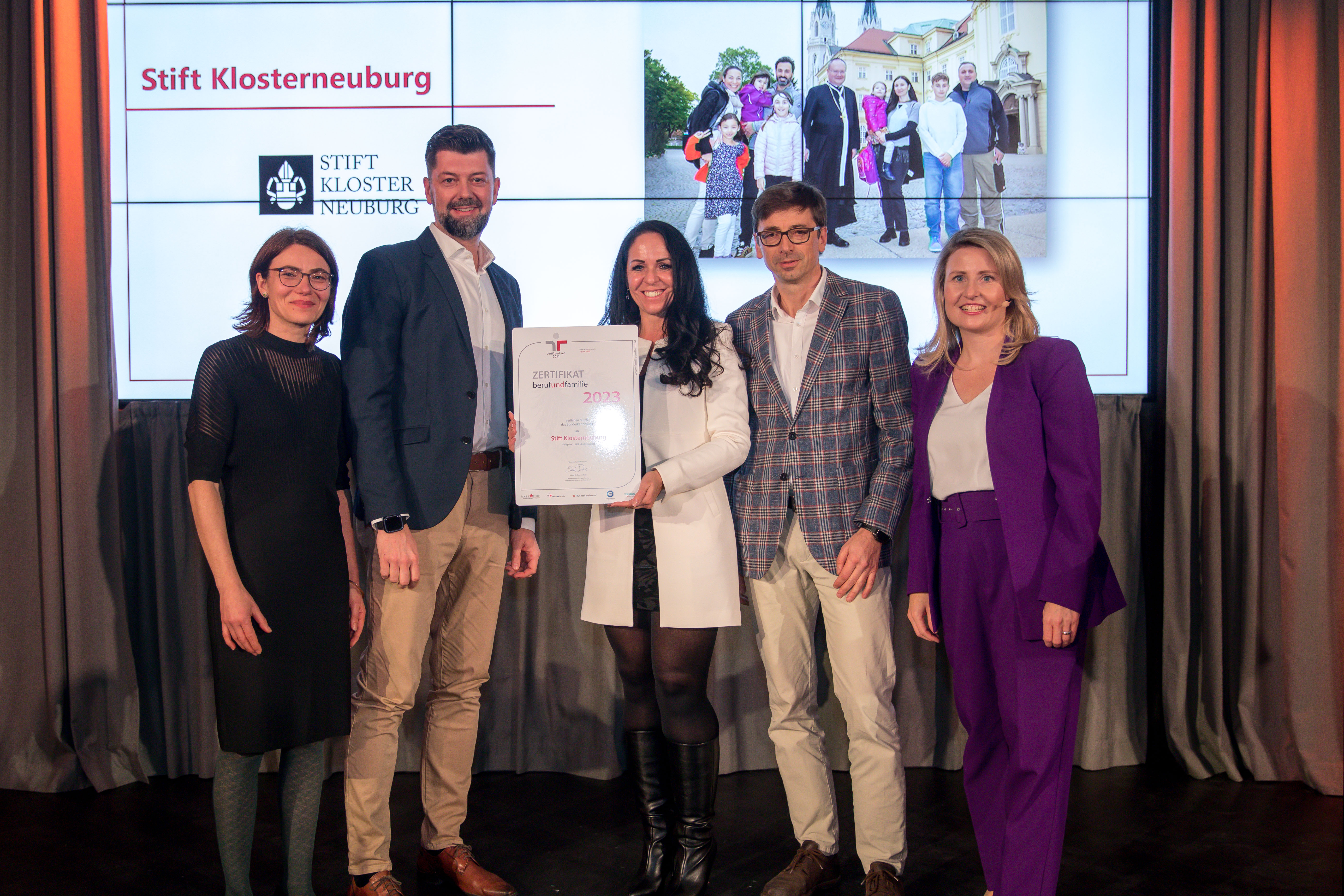 Die Wirtschaftsbetriebe des Stiftes Klosterneuburg wurden bereits zum fünften Mal in Folge als familienfreundliches Unternehmen mit der staatlichen Zertifizierung „Audit berufundfamilie“ ausgezeichnet. Familienministerin Susanne Raab überreichte am 29. Jänner 2024, im Rahmen eines Festaktes, das aktuelle Zertifikat.