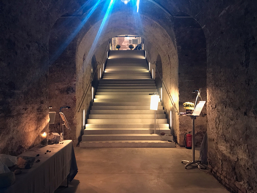 Stationen für Handlungen, Stille und Reflexion im Gewölbe des Stiftes Klosterneuburg.