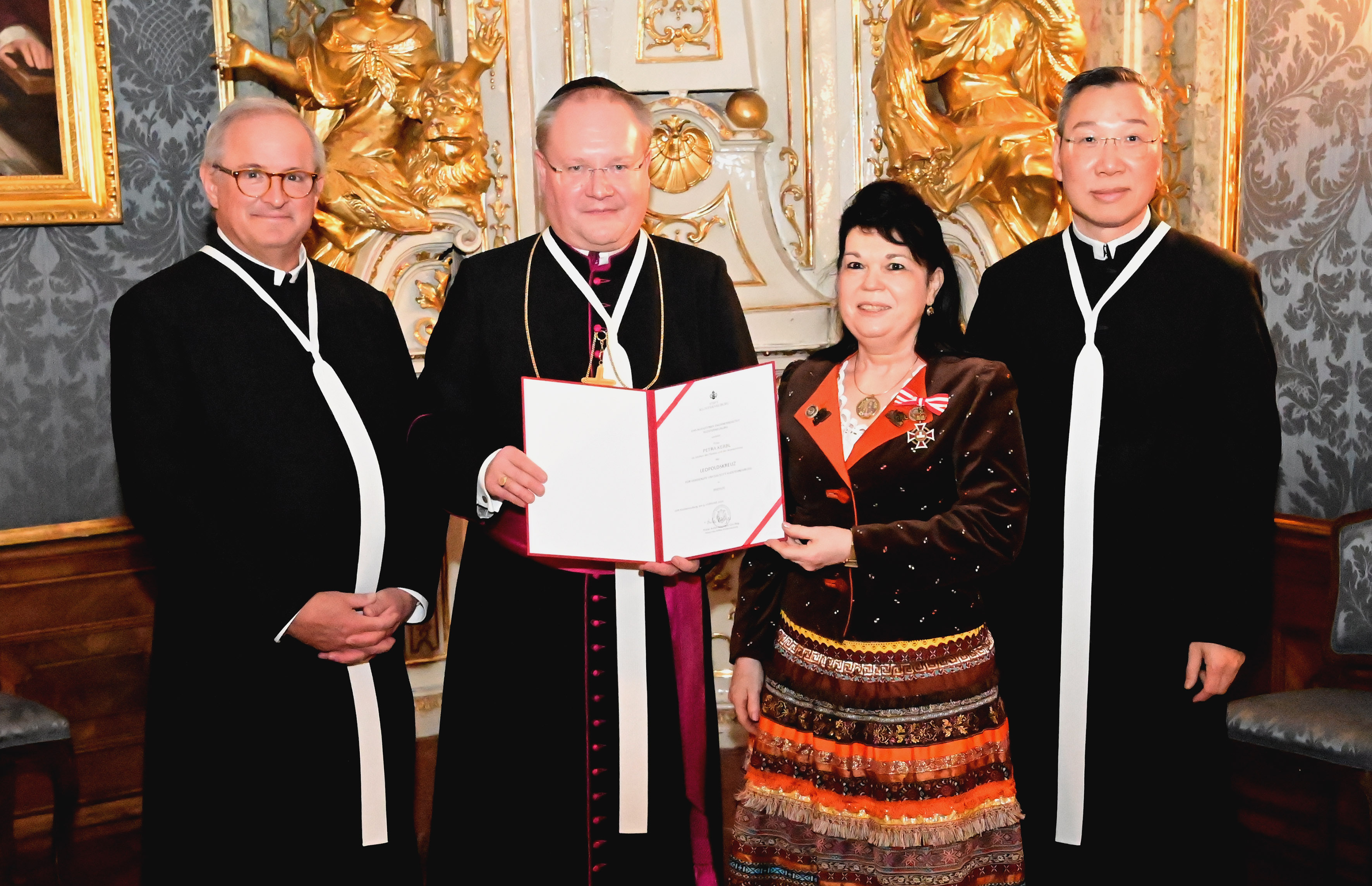 Mit der Verleihung des Leopoldskreuzes in Bronze würdigt das Stift Klosterneuburg Frau Petra Kerbl für ihre Verdienste für die Pfarre Kierling und damit auch für das Stift Klosterneuburg, zu dem die Pfarre Kierling gehört.